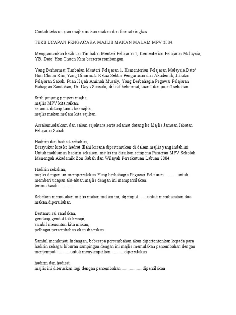 Islam adalah agama bagi persekutuan. Saya baca doa ni untuk majlis makan malam boleh tuan. Contoh teks ucapan majlis makan malam dan format ringkas ť ilusi. Kami menjayakan majlis tautan kasih semarak ukhuwah sempena majlis makan malam tahunan sekolah menengah kebangsaan senai 2021 pada malam .