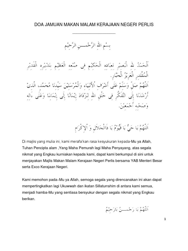 Islam adalah agama bagi persekutuan. Teks doa majlis makan malam. Saya baca doa ni untuk majlis makan malam boleh tuan. Usai doa ucapkan terima kasih.